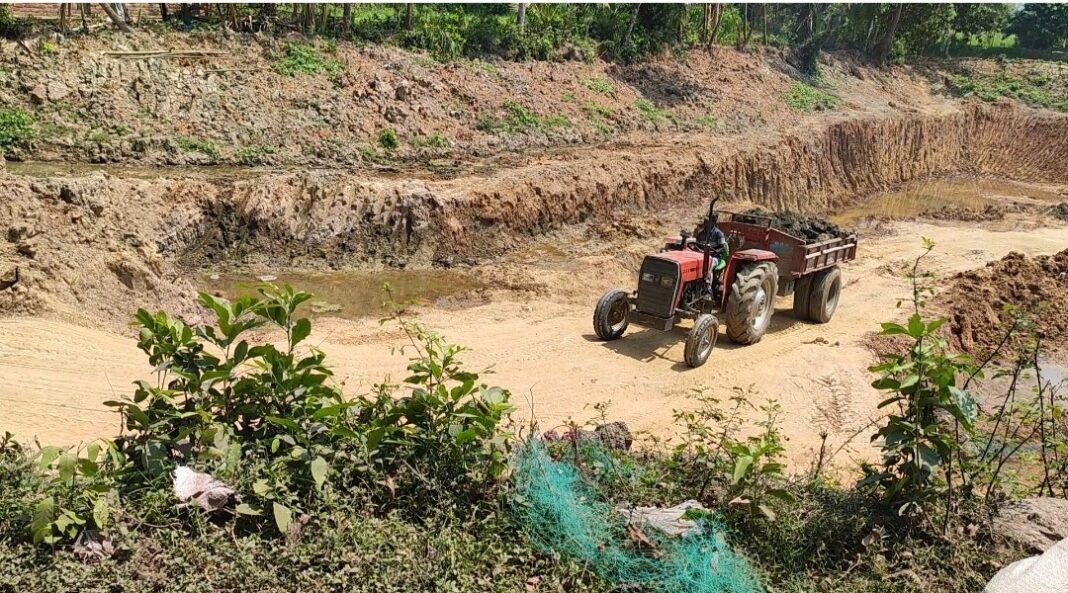 বগুড়ার আদমদিঘী উপজেলায প্রশাসনকে বৃদ্ধাঙ্গুলি দেখিযে অবৈধ পুকুর খননের হিড়িক পড়েছে। প্রশাসনের সঙ্গে সমঝোতা করে দিন-রাত পুকুর খনন হচ্ছে বলে অভিযোগ উঠেছে। এলাকা বাসীরা বলেন দু-মাস ধরে পুকুর খনন করা হলো সকল মাটি ছাতিয়ান গ্রাম হয়ে ইট ভাটায় এবং ভরাটে নিয়ে যায় । দিনের মধ্যে ২ ঘন্টা মাটি কাটা বন্ধ রাখা হয় এই সময়ে ঘটনাস্থল পরিদর্শনে আসেন একাধিক দপ্তর। উপজেলাবাসীরা বলছেন, বিএনপি সরকার আমলে এটা কিভাবে সম্ভব, অবশ্য উপজেলা প্রশাসনের নিকট কোনো ব্যক্তি অভিযোগ দিলে এস্কেভেটরের (ভেকু) ব্যাটারি খুলে আনতে দেখা যায়। পরবর্তী সময়ে দুই/একদিনের ভেতর কি এমন সমঝোতা করে ব্যাটারিসহ সকল টুলবক্স দিয়ে দেওয়া হয় তা জানা যায় বিষয়টি একাধিক সূত্রে জানা গেছে।উপজেলা প্রশাসন এবং থানা পুলিশের নাকের ডগায় প্রকাশ্যে প্রতিনিয়ত জমির আকার পরিবর্তন করে পুকুর খনন করা হচ্ছে। কিন্তু প্রশাসন কোনোরকম কঠোর পদক্ষেপ গ্রহন করছে না। থানা পুলিশ বলছে পুকুর খনন বন্ধ করার দায়িত্ব উপজেলা প্রশাসনের।নাম প্রকাশে অনিচ্ছুক ছাতিয়ান গ্রাম ইউনিয়নের স্হানীয় বাসিন্দা বলেন, আগে আ.লীগের নেতারা পুকুর খননের ব্যাপারগুলি নিয়ন্ত্রণ করত। এখন খোলস পাল্টে বিএনপির নাম ভাঙ্গিয়ে পুকুর খনন করছে। পুকুর মালিকরা বর্তমানে এই খোলস পাল্টানো দালালদের সাথে সমঝোতা ও উপজেলা প্রশাসনকে ম্যানেজ করে পুকুর খনন অব্যহত রাখছে।স্থানীয়রা বলছে, শুধুমাত্র অনেক টাকা লেনদেনের কারণে পুকুর খননের কার্যক্রম কোনোভাবেই থামছে না। তাই উপজেলা জুড়ে তিন ফসলি জমিতেও একাধিক পুকুর খনন করা হয়েছে।