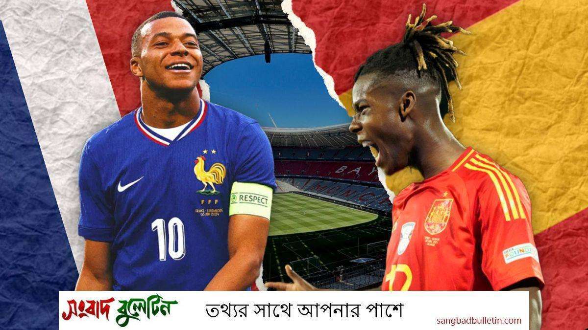 এসবি ক্রীড়া ডেস্ক : ইউরোর প্রথম সেমিফাইনালে আজ মুখোমুখি হচ্ছে বিশ্ব ফুটবলের দুই পরাশক্তি স্পেন ও ফ্রান্স। বাংলাদেশ সময় রাত একটায় জার্মানির মিউনিখ ফুটবল আরেনায় শুরু হবে ম্যাচটি।