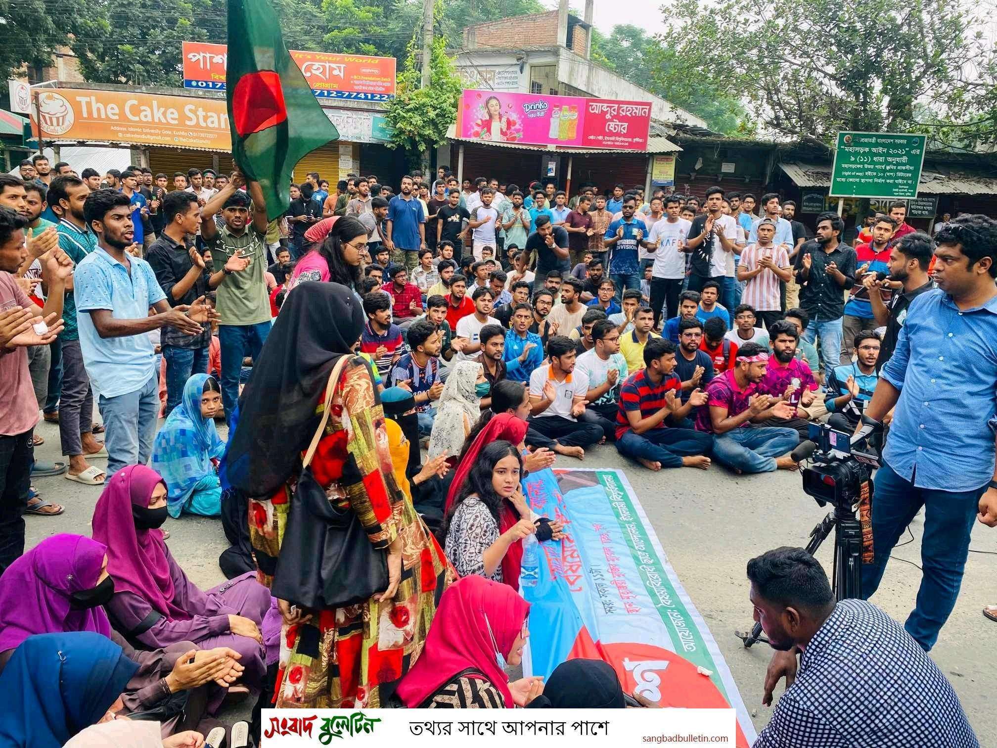 কুষ্টিয়ার ইসলামী বিশ্ববিদ্যালয়ে সপ্তম দিনের মত কোটা বিরোধী আন্দোলনে করেছে শিক্ষার্থীরা। এতে বৈষম্য বিরোধী ছাত্র আন্দোলনের ব্যানারে বাংলা ব্লক কর্মসূচির অংশ হিসেবে চতুর্থ দিনে পুলিশি বাধা উপেক্ষা করে কুষ্টিয়া-খুলনা মহাসড়ক অবরোধ করল শিক্ষার্থীরা। বৃহস্পতিবার (১১ জুলাই) বিকাল সাড়ে ৩টায় এ আন্দোলন করে শিক্ষার্থীরা। পরে কুষ্টিয়া-খুলনা মহাসড়ক অবরোধ করে তারা।