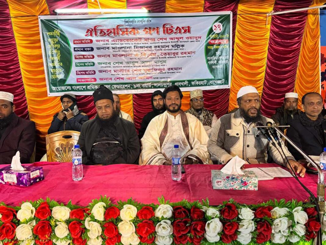 বাগেরহাটের ফকিরহাট উপজেলার মানসা-বাহিরদিয়া ইউনিয়নের ৯নং ওয়ার্ডে (লালচন্দ্রপুর) বাংলাদেশ শ্রমিক কল্যাণ ফেডারেশনের ঐতিহাসিক গণ টিএস অনুষ্ঠিত হয়েছে।