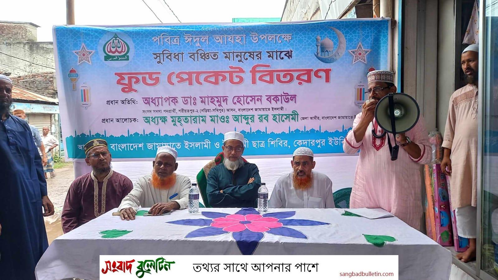 পবিত্র ঈদুল আযহা উপলক্ষে শরীয়তপুরের নড়িয়া উপজেলার কেদারপুর ইউনিয়নে অসহায় ও দুস্থদের মাঝে ফুড প্যাকেট বিতরণ করেছে বাংলাদেশ জামায়াতে ইসলামী।
