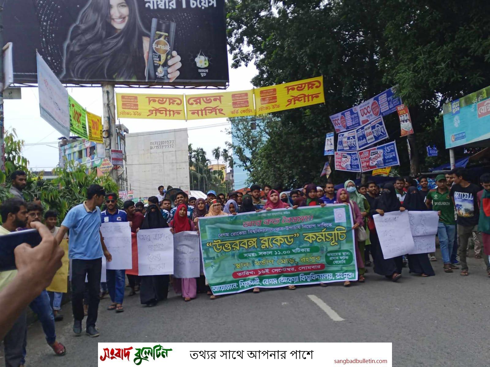 উপাচার্য নিয়োগের দাবিতে “উত্তরবঙ্গ ব্লকেড” কর্মসূচি পালন করেছে রোকেয়া বিশ্ববিদ্যালয়ের শিক্ষার্থীরা