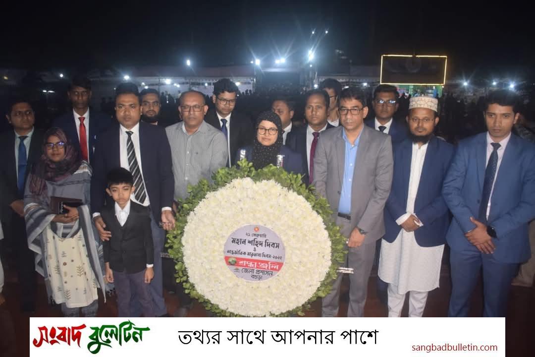 একুশের প্রথম প্রহরে বগুড়ার শহীদ মিনারে মানুষের ঢল