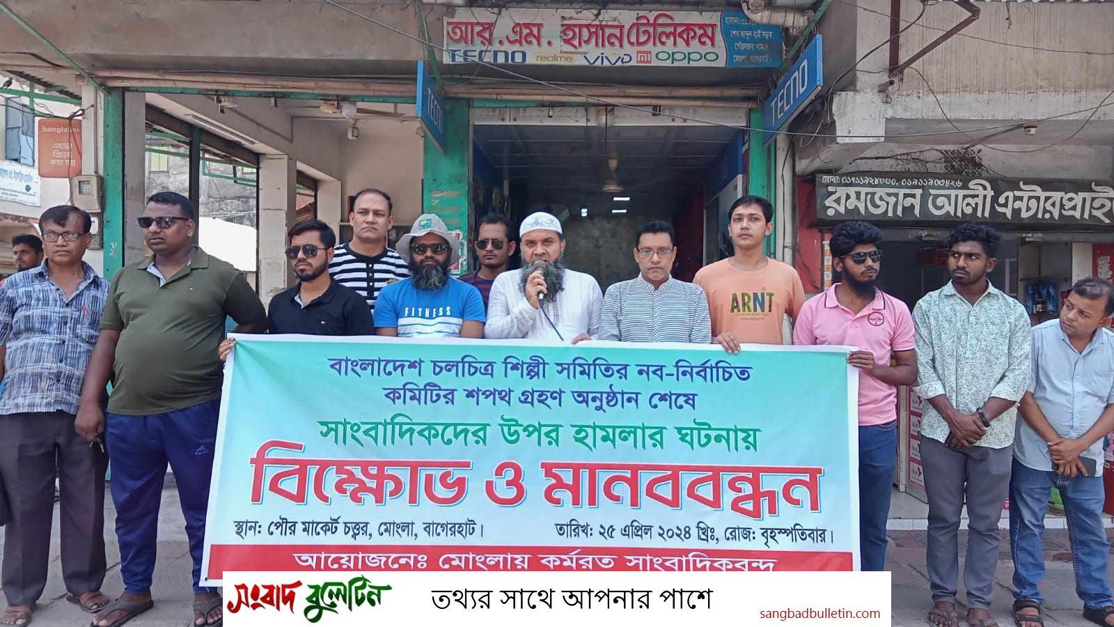 এফডিসিতে সাংবাদিকদের উপর হামলার প্রতিবাদে মোংলায় মানববন্ধন