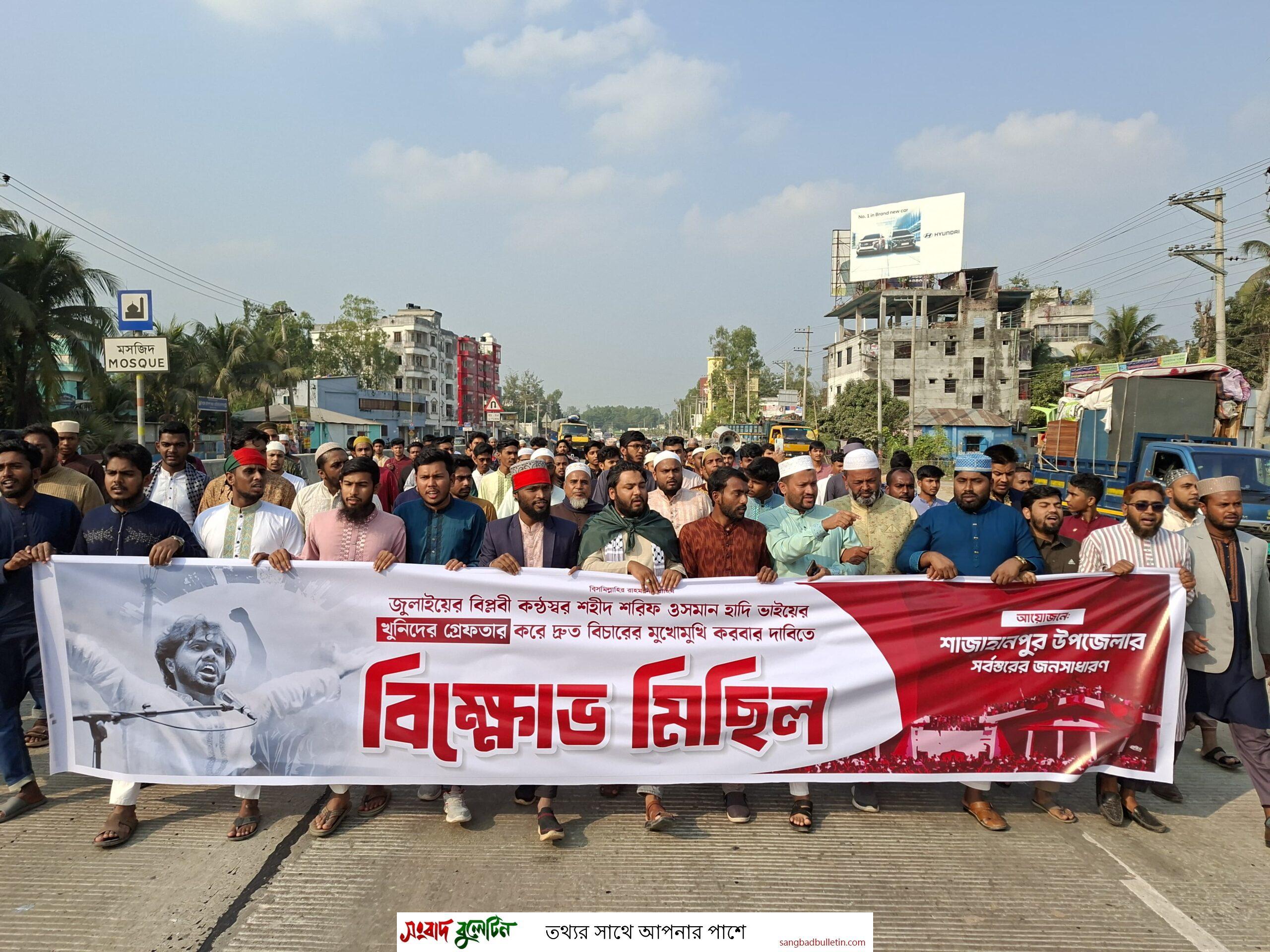 ওসমান হাদির হত্যার প্রতিবাদে শাজাহানপুরে বিক্ষোভ মিছিল ও সমাবেশ