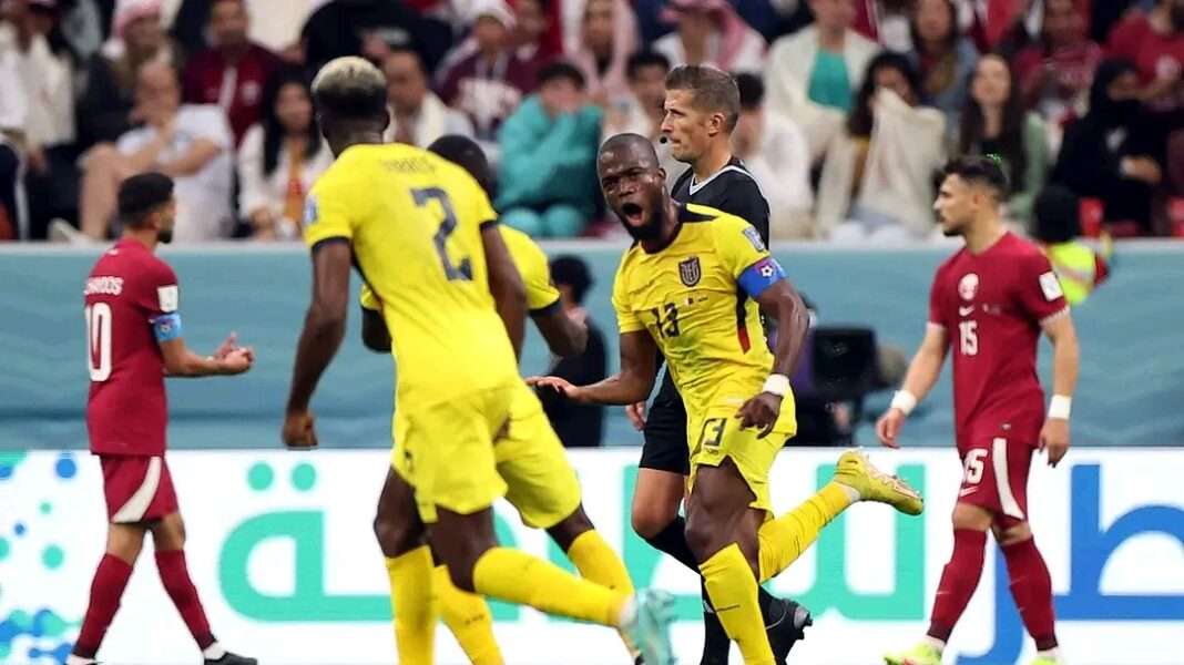 মিডফিল্ডার সেবাস মেন্দেজ বক্সে পাস বাড়ান ভ্যালেন্সিয়াকে। তাঁকে ঠেকাতে গিয়ে ফাউল করে বসেন কাতারের গোলকিপার সাদ আল–শেব। পেনাল্টির বাঁশি বাজান রেফারি। স্পটকিক থেকে ঠান্ডা মাথায় কাতার বিশ্বকাপে প্রথম গোলটি করেন ফেনেরবাচে ফরোয়ার্ড ভ্যালেন্সিয়া। এই গোলের মধ্য দিয়েই লেখা হয় নতুন ইতিহাস। বিশ্বকাপের ইতিহাসে এই প্রথমবারের মতো প্রথম গোলটি দেখা গেল পেনাল্টি থেকে। আর কী কাণ্ড দেখুন, এই গোলসহ বিশ্বকাপে ইকুয়েডরের শেষ চারটি গোলও ভ্যালেন্সিয়ার!