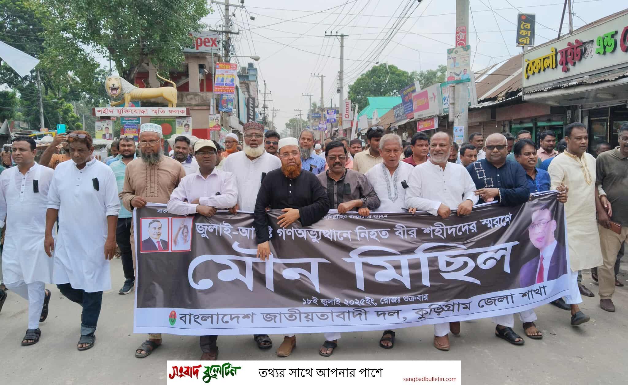 কুড়িগ্রামে জুলাই-আগষ্ট গণঅভ্যুত্থানের বীর শহীদদের স্মরণে জেলা বিএনপির মৌনমিছিল অনুষ্ঠিত