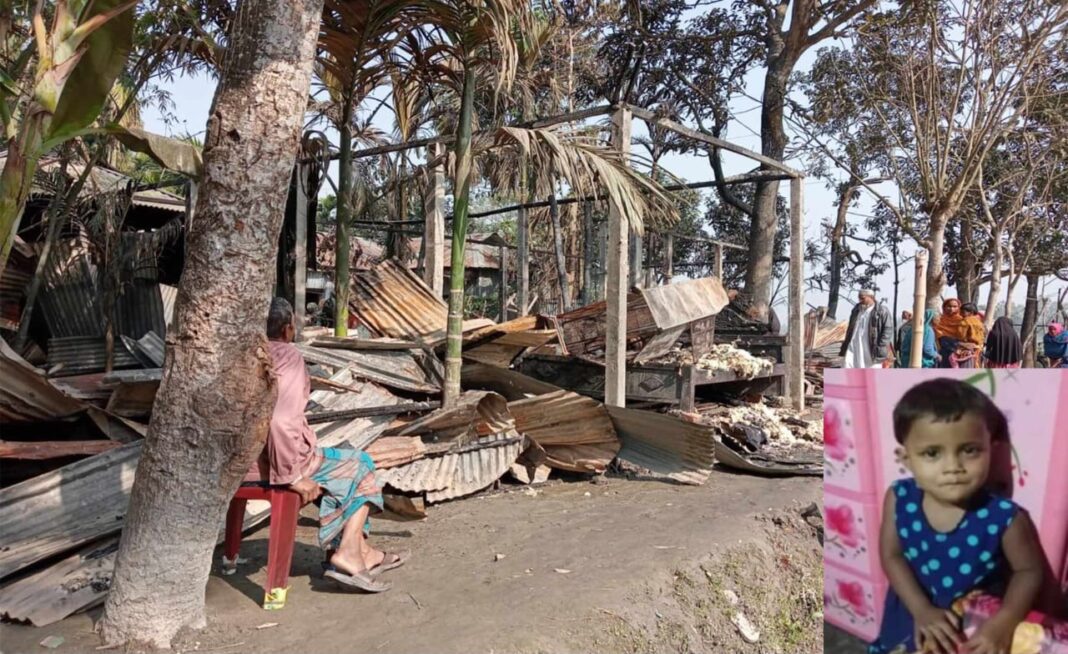 কুড়িগ্রামের রাজারহাট উপজেলার বিদ্যানন্দ ইউনিয়নের পশ্চিম সুখদেব গ্রামে আগুনে একটি বাড়ির ৪ টি ঘর ও একটি রান্না ঘর পুড়ে ভষ্মিভুত হয়েছে। এসময় ঘরের ভিতর তালাবদ্ধ থাকা আইরিন নামে ৫ বছরের এক শিশু আগুনে পুড়ে মৃত্যু বরণ করেছে। নিহত শিশু আইরিনের বাবার নাম আলামিন।