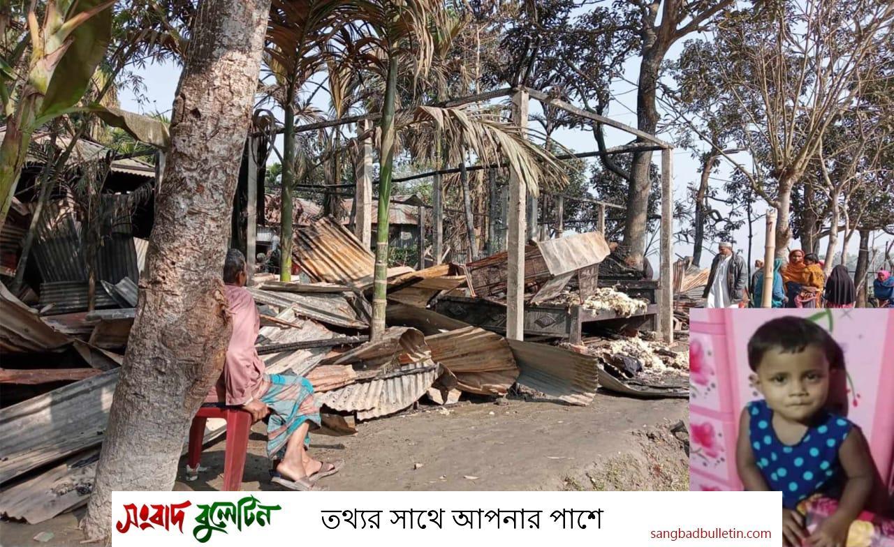 কুড়িগ্রামের রাজারহাট উপজেলার বিদ্যানন্দ ইউনিয়নের পশ্চিম সুখদেব গ্রামে আগুনে একটি বাড়ির ৪ টি ঘর ও একটি রান্না ঘর পুড়ে ভষ্মিভুত হয়েছে। এসময় ঘরের ভিতর তালাবদ্ধ থাকা আইরিন নামে ৫ বছরের এক শিশু আগুনে পুড়ে মৃত্যু বরণ করেছে। নিহত শিশু আইরিনের বাবার নাম আলামিন।