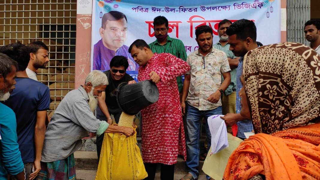 গাইবান্ধায় গরীব, অসহায়, দুস্থ মানুষের সাথে ঈদ আনন্দকে ভাগাভাগি করতে প্রধানমন্ত্রীর ঈদ উপহার ভিজিএফ চাল বিতরণ করা হয়েছে। আজ সোমবার সকালে পৌরসভার আয়োজনে ইসলামিয়া উচ্চ বিদ্যালয় প্রাঙ্গণে ৪ হাজার ৬শ পরিবারের মাঝে ১০কেজি করে চাল বিতরণ করা হয়। এছাড়াও পৌরমেয়রের ব্যাক্তিগত উদ্যোগে সাড়ে ৫ হাজার পরিবারের মাঝে সেমাই, চিনি, পোলাওয়ের চাল, ডাল, তেল, দুধসহ নানা সামগ্রী বিতরণ করা হয়। এসময় উপস্থিত ছিলেন পৌরমেয়র মতলুবর রহমান, প্যানেল মেয়র রিজু, কাউন্সিলর হাসানুজ্জামান হাসুসহ অন্যরা।