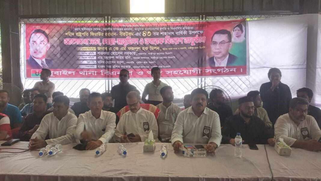 গাজীপুর থেকে আলমগীর হোসেন : গাজীপুর মহানগরীর পূবাইল থানাধীন ৪২ নং ওয়ার্ড এর কামারগাও এলাকায় পূবাইল থানা বি এন পি এর আয়োজনে শহীদ রাষ্ট্রপতি জিয়াউর রহমানের ৪৩ তম শাহাদাৎ বার্ষিকী উপলক্ষে আলোচনা সভা, দোয়ার মাহফিল ও তবারক বিতরণ অনুষ্ঠিত হয়েছে ৪ ই জুন দুপুরে,