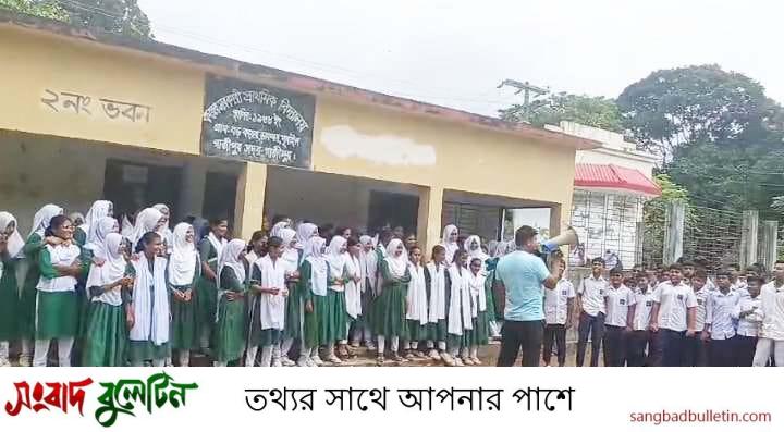 মঙ্গলবার সকাল ১০টায় স্কুল প্রাঙ্গণ থেকে বিক্ষোভ মিছিল নিয়ে সামনের সড়কে এসে জড়ো হয় ছাত্র-ছাত্রীরা। বিক্ষোভ মিছিলে অংশ নেয় ষষ্ঠ শ্রেণি থেকে দশম শ্রেণির একাধিক শিক্ষার্থী।সাথে অভিভাবক ও প্রাক্তন শিক্ষার্থীরাও ছিলেন।