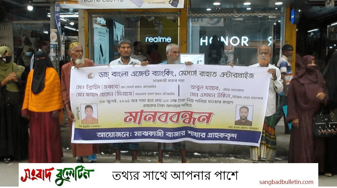 এসময় ভুক্তভোগী গ্রাহকরা অভিযোগ করে বলেন, ডাচ-বাংলা ব্যাংকের ভোলা জেলা শাখার অধীনে বরিশালের মেহেন্দীগঞ্জের মাঝকাজি বাজারের ডাচ বাংলা এজেন্ট ব্যাংকিং দেওয়া হয় ওই বাজারের মেসার্স রাহাত এন্টারপ্রাইজকে। গ্রাহকরা সরল মনে বিশ্বাস করে ওই এজেন্ট ব্যাংকিংয়ে তাদের কষ্টের জমা টাকা রাখেন। কিন্তু গত ৮ জুলাই প্রায় ৬০ লাখ টাকা নিয়ে উধাও হয়ে যায় মেসার্স রাহাত এন্টারপ্রাইজের প্রোপ্রাইটর মো.ইব্রাহীম জব্বার ও ম্যানেজার মো.ফাহাদ হোসেন মিনহাজ। এরপর থেকেই ওই শাখার কার্যক্রম পুরোপুরি বন্ধ রয়েছে।