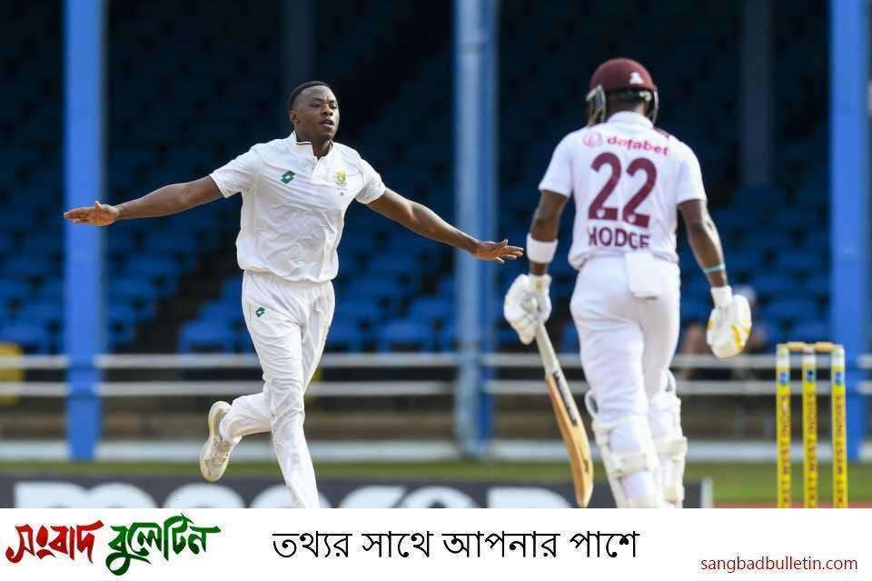 শনিবার (১০ আগস্ট) কুইন্স পার্ক অফ ওভালে ওয়েস্ট ইন্ডিজ ৪ উইকেটে ১৪৫ রান নিয়ে চতুর্থ দিনের ব্যাটিং শুরু করে। বৃষ্টিবৃঘ্নিত ম্যাচে ওয়েস্ট ইন্ডিজের ব্যাটাররা এদিন সুবিধা করতে পারে নি। স্কোরবোর্ডে ৮৮ রান তুলতেই সাজঘরে ফিরে যায় বাকি ৬ ব্যাটার। ফলে ওয়েস্ট ইন্ডিজ প্রথম ইনিংস শেষ ২৩৩ রানে। এদিন প্রোটিয়া পেসার কাগিসো রাবাদা শিকার করেন ৩ উইকেট। আর তৃতীয় দিন ৩ উইকেট নেওয়া কেশব মহারাজ এদিন শিকার করেন ১ টি উইকেট। এছাড়াও লুঙ্গি এনগিডি ও এইডেন মার্করাম শিকার করেন ১ টি করে উইকেট।