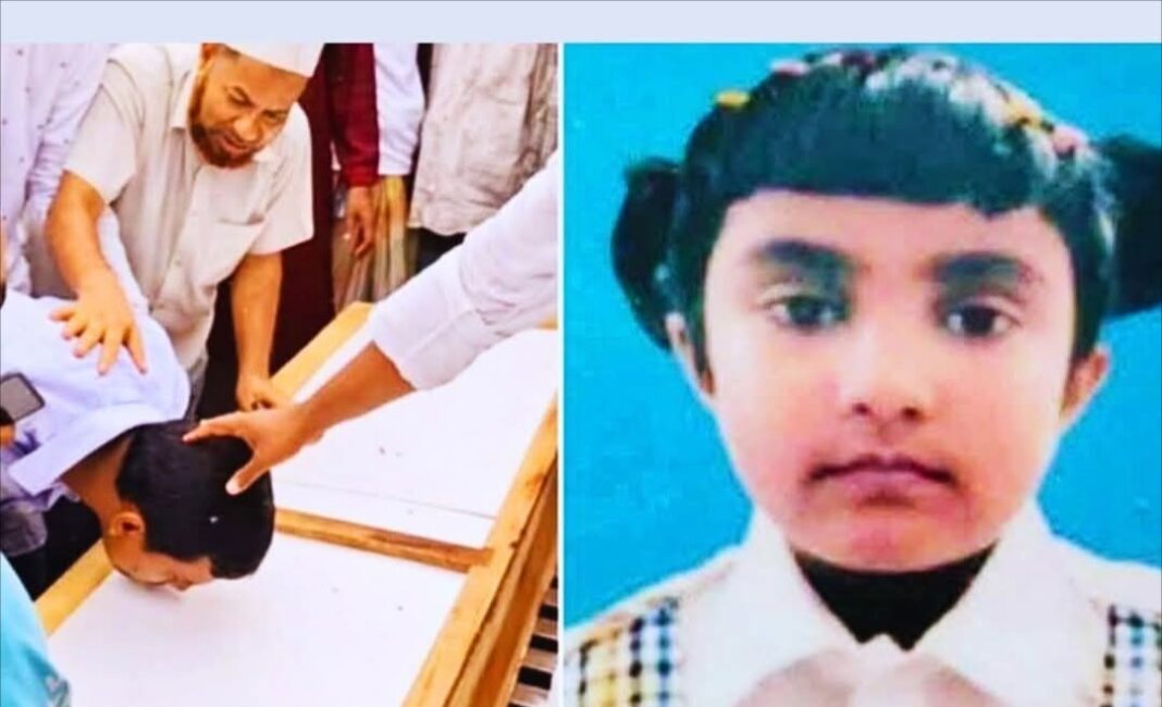 বাবার কপালে চুমু দিয়ে প্রতিদিন ক্লাসে যেত মেহেনাজ আফরি হুমায়রা (৯)। তবে আর কখনো বাবার হাত ধরে স্কুলে যাবে না মেহেনাজ। কখনো মেয়েকে আদর করতে পারবেন না বাবা। তাই চিরবিদায় দেওয়ার আগে মেয়ের কফিনে বারবার চুমু খাচ্ছিলেন বাবা দেলোয়ার হোসাইন। আজ মঙ্গলবার (২২ জুলাই) সকালে টাঙ্গাইলের সখীপুর উপজেলার হতেয়া কেরানীপাড়া নিহত মেহেনাজের গ্রামের বাড়িতে দেখা যায় এমন হৃদয়বিদারক দৃশ্য।