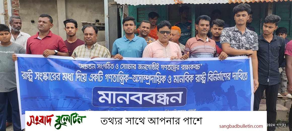 মোংলা সংবাদদাতা : জাতীয় নির্বাচনের আগেই রাষ্ট্র সংস্কার চাই। বৈষম্য বিরোধী ছাত্র আন্দোলনে শহীদদের তালিকা করে সংশ্লিষ্ট পরিবারকে সহায়তা ও ক্ষতিপূরণ দিতে হবে। আহতদের সুচিকিৎসাসহ পুনর্বাসনের ব্যবস্থা করতে হবে। আওয়ামী ফ্যাসিস্ট সরকার কর্তৃক সংঘটিত হত্যাকান্ড, হামলা ও নির্যাতন বিষয়ে জাতিসংঘের তত্ত্বাবধানে দ্রুত তদন্ত কমিটি গঠন করতে হবে। ২৪ আগস্ট শনিবার সকালে রাষ্ট্র সংস্কারের মধ্যে দিয়ে একটি গণতান্ত্রিক -অসাম্প্রদায়িক ও মানবিক রাস্ট্র বিনির্মানের দাবিতে দেশব্যাপী কর্মসুচির অংশ হিসেবে মিঠাখালী বাজারে সুশাসনের জন্য নাগরিক সুজন মোংলা আয়োজিত মানববন্ধন চলাকালে সমাবেশে বক্তারা একথা বলেন।
