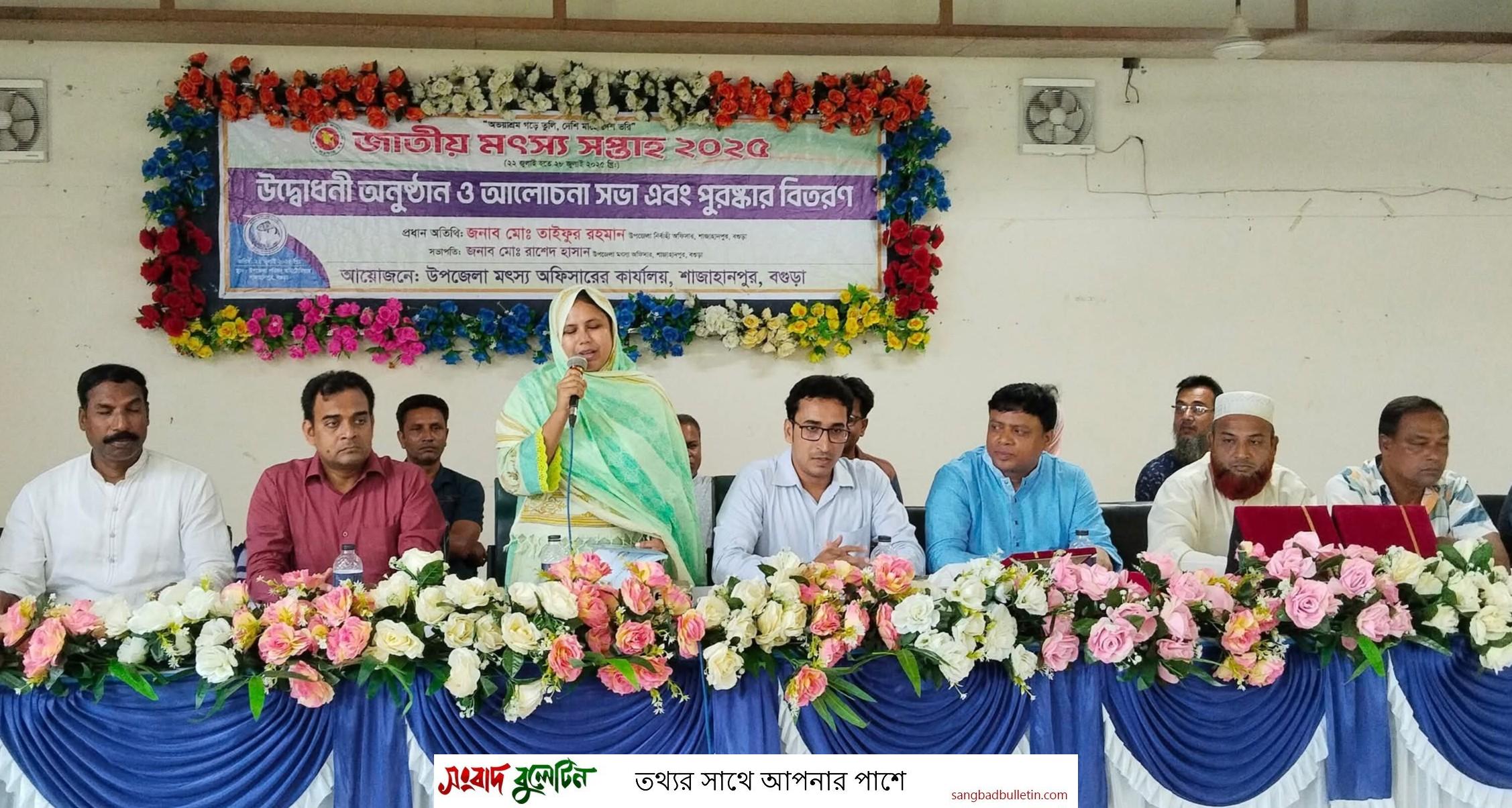 “অভয়াশ্রম গড়ে তুলি, দেশি মাছে দেশ ভরি”—এই প্রতিপাদ্যকে সামনে রেখে জাতীয় মৎস্য সপ্তাহ-২০২৫ উপলক্ষে সোমবার (১৮ আগস্ট) বগুড়ার শাজাহানপুরে বর্ণাঢ্য র্যালি, আলোচনা সভা ও পুরস্কার বিতরণী অনুষ্ঠান অনুষ্ঠিত হয়েছে।
