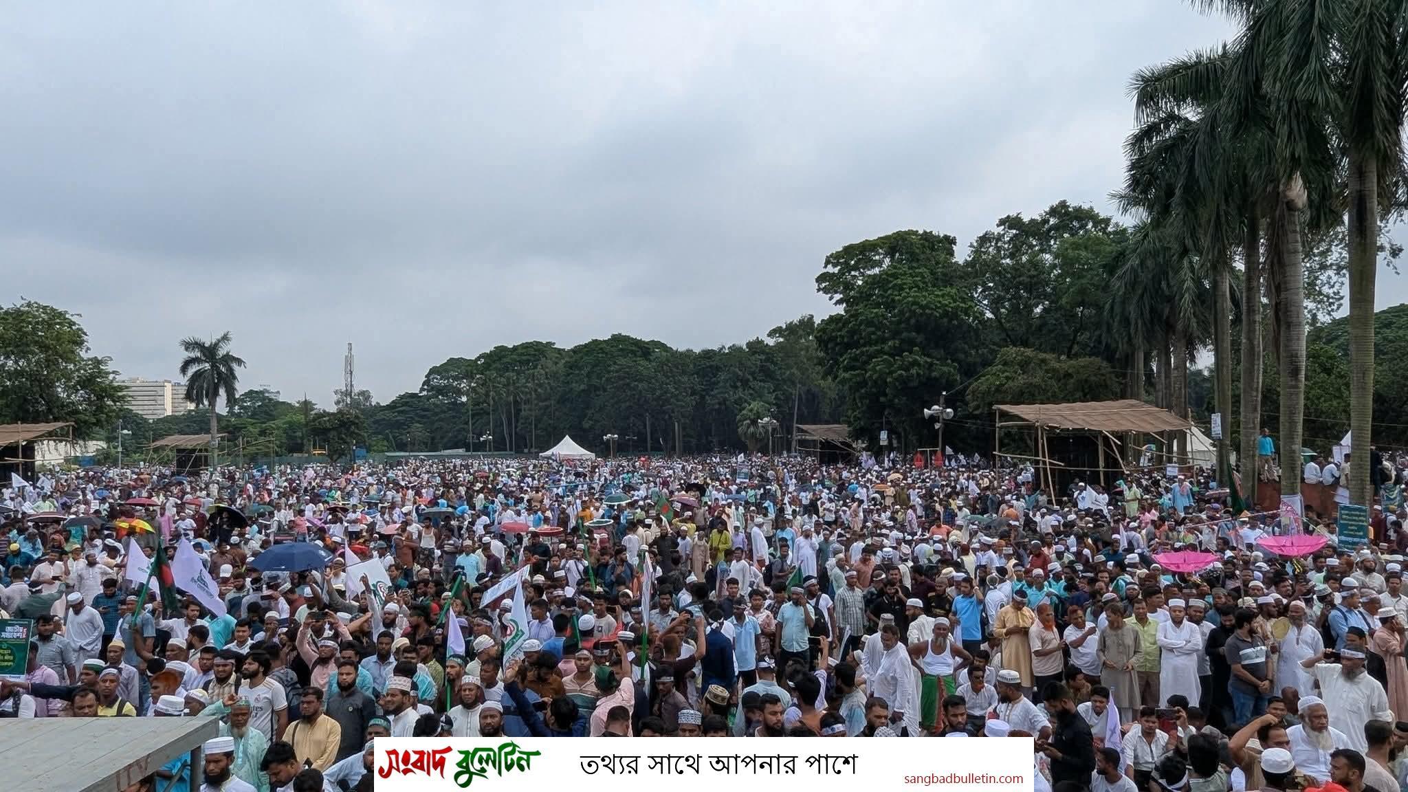 ৭ দফা দাবিতে রাজধানী ঢাকার ঐতিহাসিক সোহরাওয়ার্দী উদ্যানে জামায়াতের জাতীয় সমাবেশে নেতা-কর্মীদের ঢল নেমেছে। সমাবেশ শুরুর ৬ ঘণ্টা আগেই দলটির নেতা-কর্মী ও সমর্থকদের উপস্থিতিতে প্রায় কানায় পরিপূর্ণ হয়ে গেছে সোহরাওয়ার্দী উদ্যান। এছাড়াও সোহরাওয়ার্দী উদ্যানের বাইরে হাজার হাজার জামায়াতের নেতা-কর্মীরা অবস্থান করছেন।