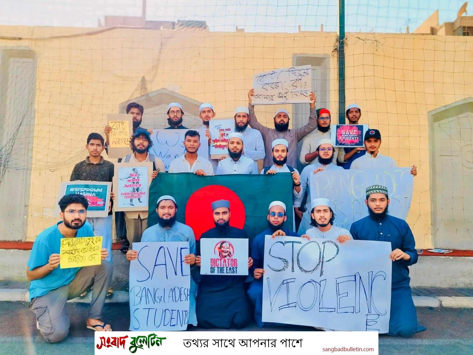 আমরা জানি না, ঠিক কতটা ছটফট করেছিলাম ওই দিনগুলোতে। শুধু জানি, আমরা দোয়া করেছি, কুরআন তেলাওয়াত করেছি, রাতভর প্রার্থনায় হাত তুলেছি—শুধু এইটুকু করার অনুমতি ছিল বিধিনিষেধের কঠোর গণ্ডির ভেতরে থেকেও। বৈদেশিক নিয়মনীতি মেনে যতটুকু সম্ভব, আমরা সেই প্রতিবাদের অংশ হয়েছি। বুকের ভেতর আগুন নিয়ে গিয়েছি ক্লাসে, ফিরেছি হোস্টেলে—চোখেমুখে ছিল শোক আর ক্ষোভের ছায়া।