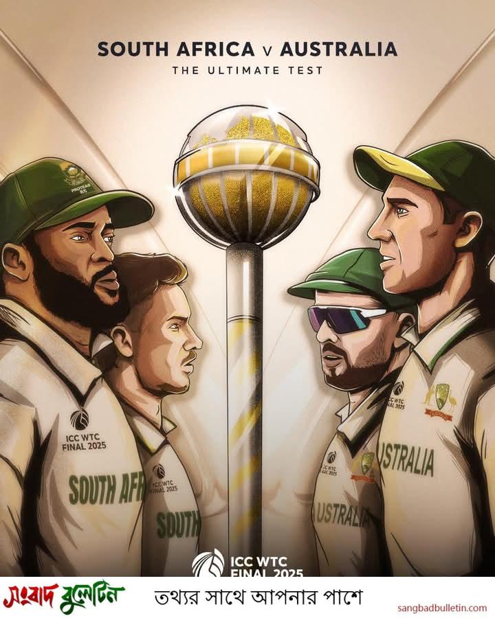 এসবি ক্রীড়া ডেস্ক: লর্ডসে বিশ্ব টেস্ট চ্যাম্পিয়নশিপের ফাইনাল আজ মুখোমুখি হবে অস্ট্রেলিয়া ও দক্ষিণ আফ্রিকা।