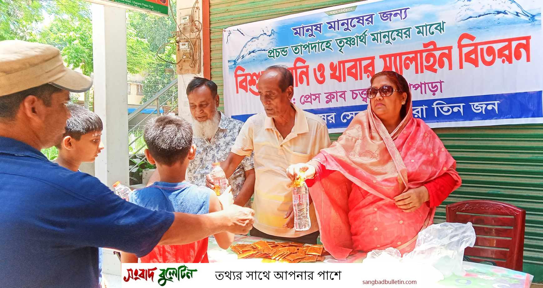 তৃষ্ণার্ত পথচারীদের মাঝে বিশুদ্ধ পানি স্যালাইন বিতরণ