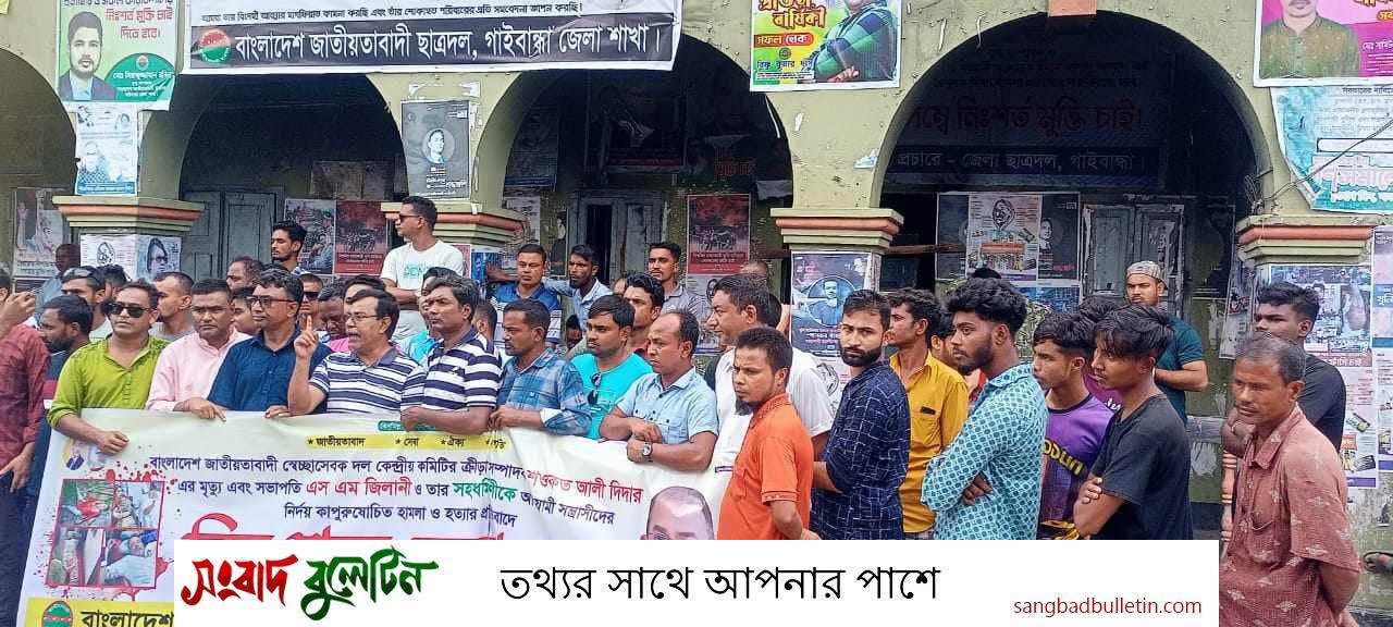 গোপালগঞ্জে স্বেচ্ছাসেবক দলের সভাপতির উপর হামলা ও ক্রীড়া বিষয়ক সম্পাদককে হত্যার প্রতিবাদে গাইবান্ধায় বিক্ষোভ -সমাবেশ করেছে স্বেচ্ছাসেবক দল।