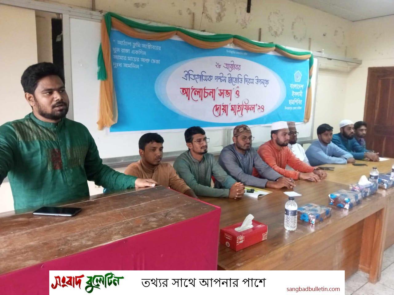 ঐতিহাসিক ২৮ শে অক্টোবরের নৃশংস হামলায় শহীদদের স্মরণে আলোচনা সভা ও দোয়া মাহফিলের আয়োজন করে বাংলাদেশ ইসলামী ছাত্রশিবির দিনাজপুর জেলা দক্ষিণ।
