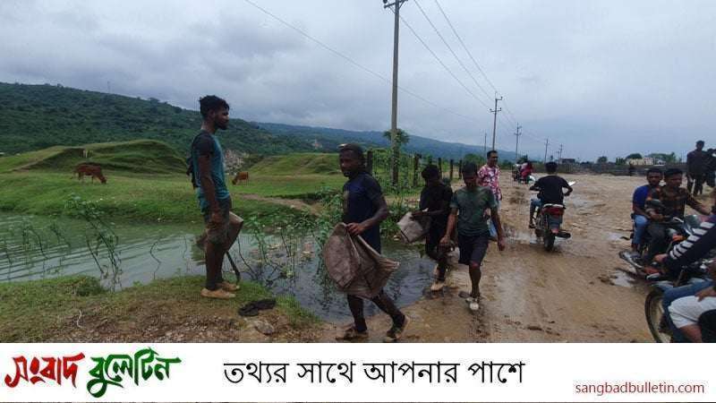 ছবির কেপশন:-সুনামগঞ্জের টেকেরঘাটের শহীদ সিরাজ লেকের পাশে কয়লা নিয়ে আসা শ্রমিকদের একাংশ