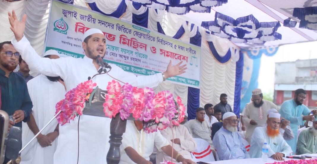 নন্দীগ্রাম (বগুড়া) প্রতিনিধি: বাংলাদেশ জামায়াতে ইসলামী মনোনীত বগুড়া-৪ (কাহালু-নন্দীগ্রাম) আসনের সংসদ সদস্য পদপ্রার্থী ড. মোস্তফা ফয়সাল পারভেজ বলেছেন, দেশের মানুষের মুক্তির ও কল্যাণের জন্য বাংলাদেশ জামায়াতে ইসলাম পিআর সিস্টেম চায়। কেয়ার টেকার সরকার ব্যাতীত কোথাও সুষ্ঠু নির্বাচন অনুষ্ঠিত হয় নি। ফ্যাসিবাদ দুর করতে বিশ্বের উন্নত দেশের ন্যায় বাংলাদেশে পিআর পদ্ধতি প্রয়োজন। শুক্রবার (২৬ সেপ্টেম্বর) বিকেল ৪ টায় বগুড়ার নন্দীগ্রাম বাসস্ট্যান্ডে মীর মুগ্ধ চত্বরে জুলাই জাতীয় সনদের ভিত্তিতে ফেব্রুয়ারিতে নির্বাচনসহ পাঁচ দফা দাবীতে বিক্ষোভ মিছিল ও সমাবেশ অনুষ্ঠানে উপজেলা আমীর আব্দুর রহমানের সভাপতিত্বে ও পৌর জামায়াতের সেক্রেটারি আব্দুল আলিমের সঞ্চালনায় প্রধান অতিথির বক্তব্য উপরোক্ত কথাগুলো বলেন ড. মোস্তফা ফয়সাল পারভেজ। তিনি আরো বলেন, ৫ই আগষ্ট গণঅভ্যুত্থানে শহিদদের এখনো সাংবিধানিক স্বীকৃতি দেওয়া হয়নি। যারা ক্ষমতায় যাবার জন্য মরিয়া হয়ে উঠেছেন তারা ৫ই আগষ্টে শহীদদের স্বীকৃতির বিষয় যেন ভুলে না যায়।