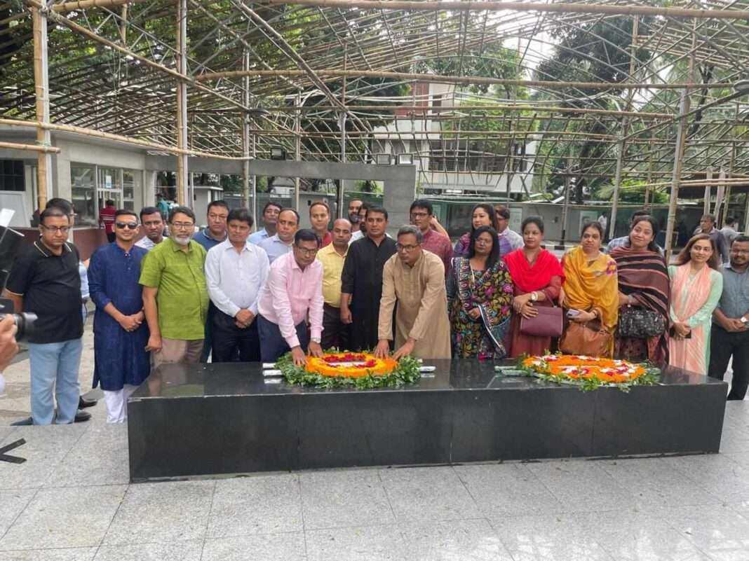 বৃহস্পতিবার (০৪ জুলাই) দুপুরে ১টার দিকে কমিটির অনুষ্ঠানটি কার্যক্রম শুরু উপলক্ষে তাঁরা এ শ্রদ্ধা নিবেদন করেন বলে জানা যায়। কমিটির আহ্বায়ক অধ্যাপক ড. মাহবুবুল আরফিন ও সদস্য সচিব অধ্যাপক ড. মো. মাহবুবর রহমানের নেতৃত্বে উপস্থিত ছিলেন ছিলেন যুগ্ম আহ্বায়ক অধ্যাপক ড. শেলীনা নাসরীন ও অধ্যাপক ড. মিয়া মো. রাসিদুজ্জামান।
