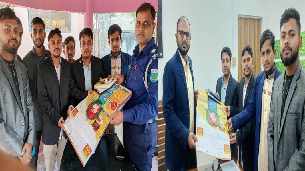 বাংলাদেশ ইসলামী ছাত্রশিবির ধুনট উপজেলার পক্ষ থেকে থানার ভারপ্রাপ্ত কর্মকর্তা (ওসি) সাইদুল আলম ও সহকারী কমিশনার (ভূমি)মোঃ খায়রুজ্জামানকে স্মৃতিময় ৩৬ জুলাইয়ের ক্যলেন্ডার,ডায়েরি ও ডেক্স ক্যলেন্ডার উপাহার দেন।