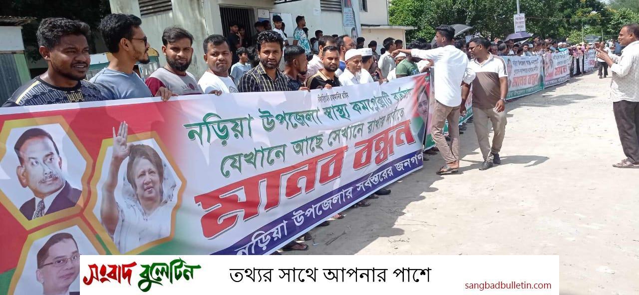 বৃহস্পতিবার (৫ সেপ্টেম্বর) শরীয়তপুর নড়িয়া উপজেলার কেদারপুর ইউনিয়ন এর মুলফতগঞ্জে অবস্থিত নড়িয়া উপজেলা স্বাস্থ্য কমপ্লেক্স এর সামনে শত-শত মানুষ বেলা ১১ টার দিকে এ মানববন্ধন ও বিক্ষোভ মিছিল করে। মানব বন্ধন শেষে মিছিলটি উপজেলা স্বাস্থ্য কমপ্লেক্সে এর সামনে থেকে শুরু হয়ে মুলফতগঞ্জ বাজার প্রদক্ষিণ করে স্বাস্থ্য কমপ্লেক্স এর সামনে এসে শেষ হয়।