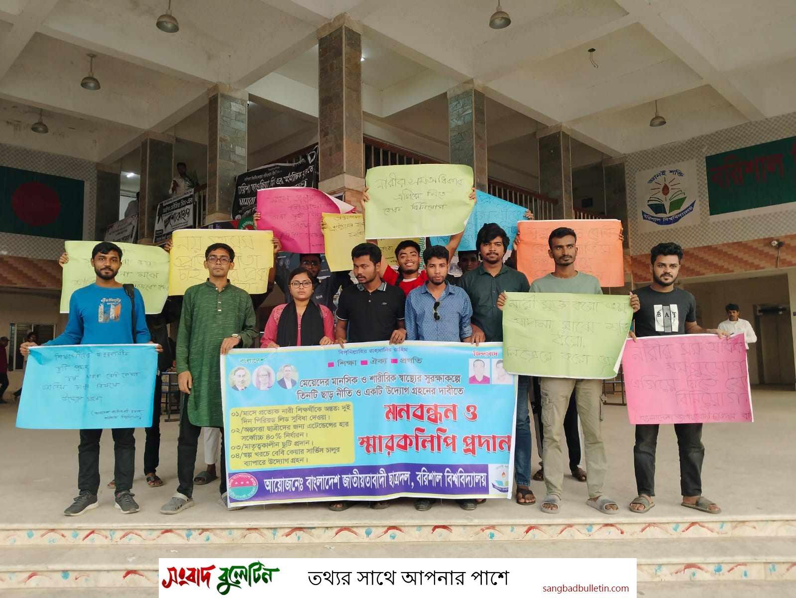 শিক্ষা ও কর্মক্ষেত্রে নারীর অংশগ্রহণ ও ক্ষমতাগত ন্যায্যতা বিধান নিশ্চিত করার ক্ষেত্রে নারীর মানসিক ও শারীরিক স্বাস্থ্যের সুরক্ষা একটি গুরুত্বপূর্ণ ইস্যু। আমাদের দেশে নারীর ক্ষমতায়ন নিয়ে নানান আলোচনা ও দৃশ্যগত উদ্যোগ দেখা গেলেও স্বাস্থ্য সুরক্ষার বিষয়ে এখন পর্যন্ত কোন পদক্ষেপ নেয়া হয়নি। এমনিতেই একজন নারী শিক্ষার্থীকে একজন পুরুষ পুরুষ শিক্ষার্থীর তুলনায় সামাজিক ভাবে অতিরিক্ত বাধা অতিক্রম করে এ পর্যায়ে পৌছাতে হয়। কিন্তু সুযোগ সুবিধা প্রদানে তাদের শারীরিক ও মানসিক স্বাস্থ্য সুরক্ষার দিকটি যথাযথ বলে বিবেচিত হচ্ছে না বলে স্বারক লিপিতে উল্লেখ করে বরিশাল বিশ্ববিদ্যালয় ছাত্রদল।
