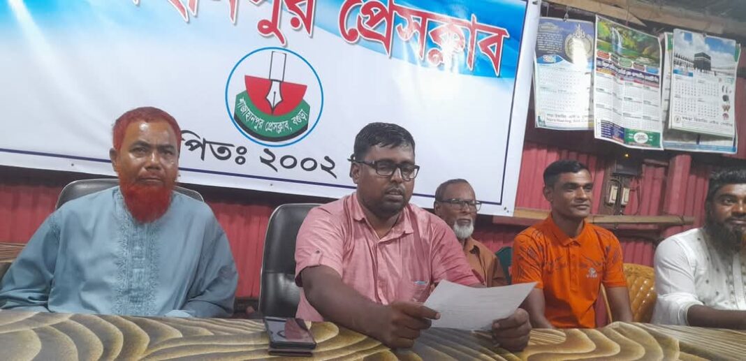 বগুড়ার শাজাহানপুরে এক ব্যক্তির অজান্তেই তার নাম উপজেলা স্বেচ্ছাসেবকলীগের কমিটিতে অন্তর্ভূক্ত করা হয়েছে বলে অভিযোগ উঠেছে। এ ঘটনার প্রতিবাদে বৃহস্পতিবার বিকালে শাজাহানপুর প্রেসক্লাবে সংবাদ সম্মেলন করেছেন ভূক্তভোগী তোতা মিয়া নামের ওই ব্যক্তি।