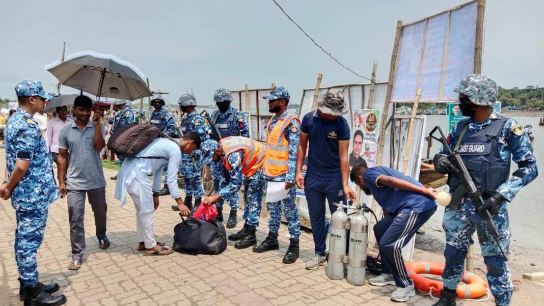 আসন্ন পবিত্র ঈদ-উল-আযহা-২০২৫ উপলক্ষ্যে বাংলাদেশ কোস্ট গার্ড পশ্চিম জোন খুলনার রুপসা, কয়রা, নলিয়ান, বাগেরহাটের মোংলা, শরণখোলা এবং সাতক্ষীরা জেলার কৈখালীর গুরুত্বপূর্ণ লঞ্চ,খেয়া,ফেরি ঘাট সমূহে জননিরাপত্তা প্রদানের লক্ষ্যে বিশেষ টহল, জনসচেতনতা মূলক মাইকিং, লিফলেট বিতরণ, সন্দেহজনক ব্যক্তি ও বোট, নৌযান সমূহে তল্লাশি এবং যাত্রীদের ব্যাগ স্ক্যানসহ অন্যান্য নিরাপত্তামূলক কার্যক্রম পরিচালনা করছে।