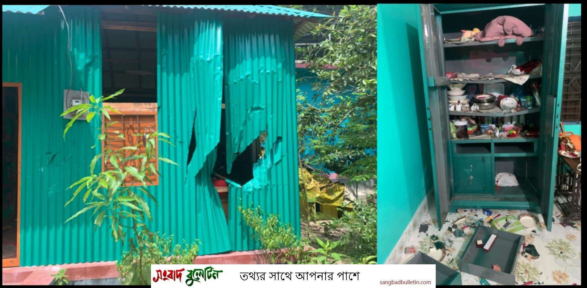 [খ]স্থানীয় ও ভুক্তভোগী পরিবার সূত্রে জানা যায়, রফিকুল ইসলাম ওরফে রবি গ্রুপ ও বেনজির আহমেদ ওরফে বেনু মেম্বার গ্রুপের সমর্থকদের মাঝে পূর্ব শত্রুতা ও আধিপত্য বিস্তার নিয়ে এলাকায় দুই গ্রুপের মধ্যে দীর্ঘদিন ধরে ককটেল বিস্ফোরণ, গুলি ও দফায় দফায় হামলা ভাঙচুরের ঘটনা ঘটেছে। এসব ঘটনায় বেনু মেম্বার গ্রুপের একাধিক মামলার আসামী ব্যাঙ্গা বাড়ির শামিম র্যাবের হাতে গ্রেপ্তার হন। দীর্ঘদিন জেল খেটে জামিনে বের হন তিনি। এরই জের ধরে আজ রবিবার দুপুরে শামিম, রাহাদ, গোলজার (মেম্বার), বেনু মেম্বার দেলোয়ার হোসেন, জয়নাল, নাছির উদ্দীন, খোরশেদ মিয়া এর নেতৃত্বে এ হামালা চালানো হয়। এসময় হামলাকারীরা রামদা, চাপাতি, কুড়াল, পাইপ, শাবল সহ দেশীয় অস্ত্রশস্ত্র নিয়ে মফিজুল, আশরাফুল ও রোখসানার বসত ঘরে হামলা চালিয়ে ব্যাপক ভাংচুর ও লুটপাট করে। হামলাকারীদের নির্বিত্ত করার চেষ্টা করলে আবু তাহের, শফিকুল ইসলাম অদুদ মিয়া, ও তাইজুল ইসলাম গুরুত্বর আহত হয়ে সদর হাসপাতালে চিকিৎসাধীন রয়েছে।