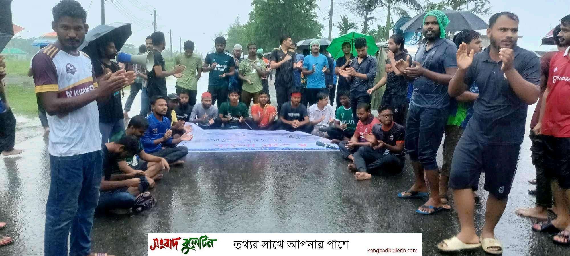পুলিশের সামনেই সড়ক অবরোধ করে ‘বাংলা ব্লকেড’ কর্মসূচি পালন বশেমুরবিপ্রবি শিক্ষার্থীদের
