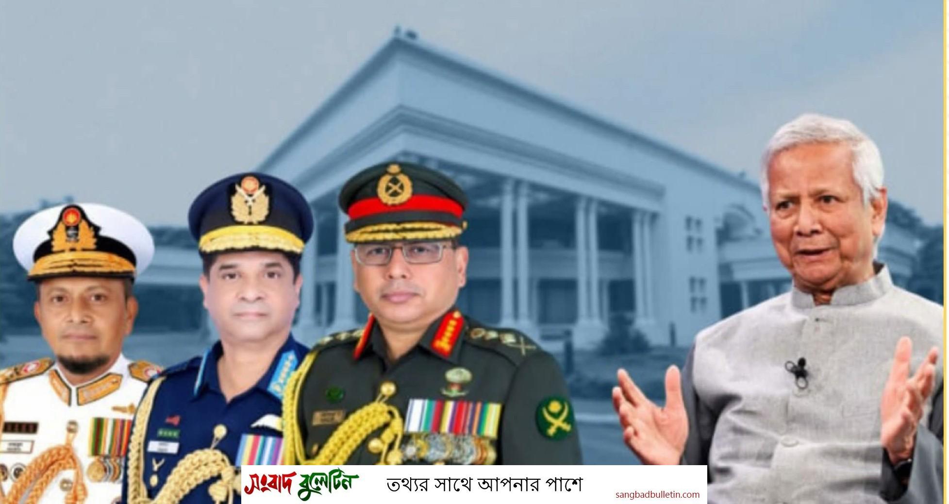 নাম প্রকাশ না করার শর্তে প্রধান উপদেষ্টার কার্যালয়ের এক কর্মকর্তা জানান, বৈঠকটি প্রধান উপদেষ্টা আহ্বান করেননি; বরং তিন বাহিনীর প্রধানরাই স্বতঃপ্রণোদিত হয়ে প্রধান উপদেষ্টার সঙ্গে দেখা করতে যান।