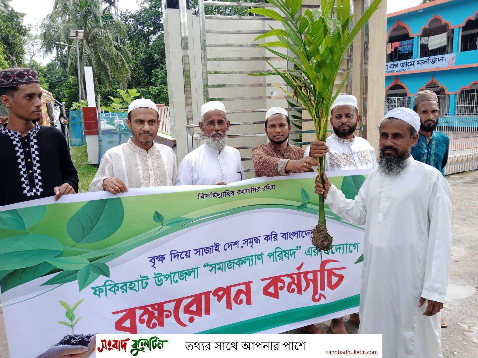 এসময় ফকিরহাট উপজেলা সমাজ কল্যাণ পরিষদের সভাপতি শেখ জাহাঙ্গীর হোসেনের সভাপতিত্বে মসজিদে জুমার নামাজে আগত মুসল্লিদের মাঝে তিন শত সিংগাপুরের সুপারি গাছের চারা বিতরণ করা হয়।