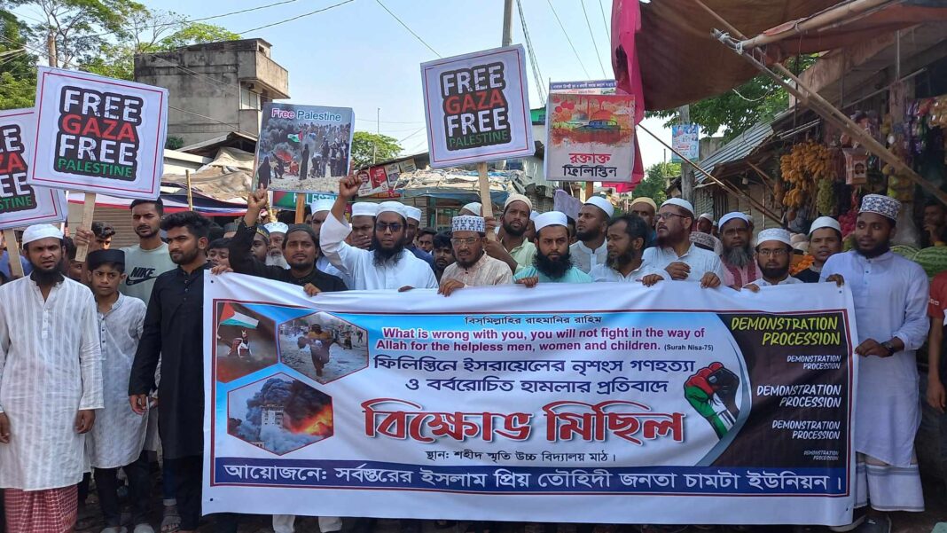 ফিলিস্তিনে গণহত্যার প্রতিবাদে চামটা ইউনিয়নে বিক্ষোভ মিছিল
