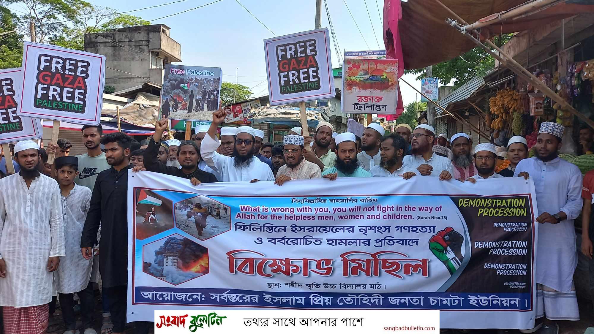 ফিলিস্তিনে গণহত্যার প্রতিবাদে চামটা ইউনিয়নে বিক্ষোভ মিছিল