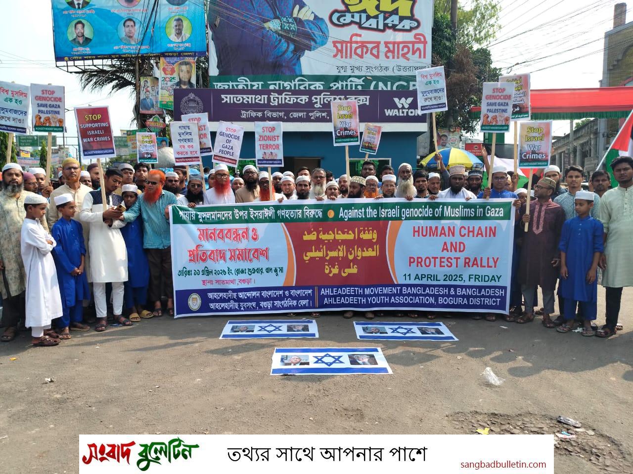 ফিলিস্তিনে গণহত্যা বন্ধের দাবিতে বগুড়ায় আহলেহাদীছ আন্দোলন ও যুবসংঘের মানববন্ধন ও প্রতিবাদ সমাবেশ