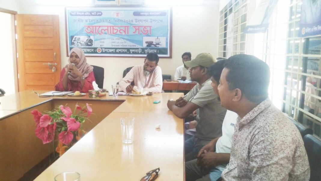“স্মার্ট লিগ্যাল এইড, স্মার্ট দেশ, বঙ্গবন্ধুর বাংলাদেশ” এই প্রতিপাদ্য বিষয় সামনে রেখে কুড়িগ্রামের ফুলবাড়ীতে জাতীয় আইনগত সহায়তা দিবস পালন করেছে উপজেলা প্রশাসন। ২৮ এপ্রিল রোববার দুপুর ১২ টায় জাতীয় আইনগত সহায়তা দিবস উপলক্ষে উপজেলা পরিষদ সভাকক্ষে এক আলোচনা সভা অনুষ্ঠিত হয়।