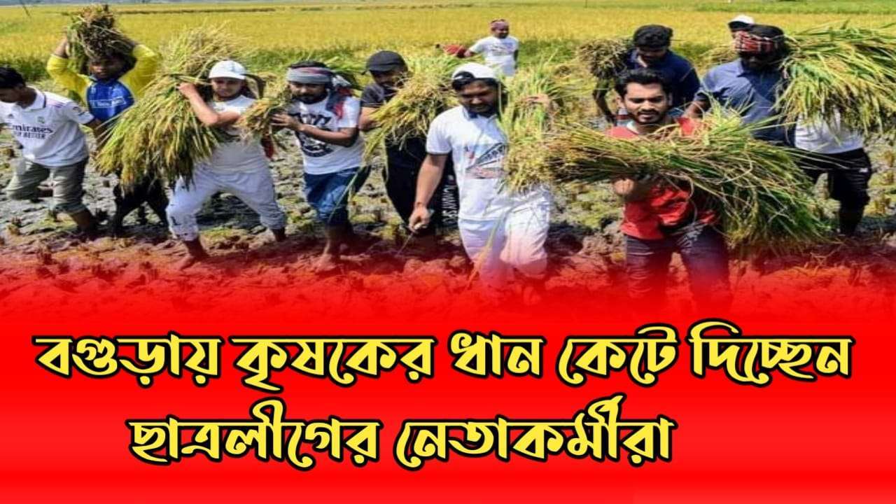বগুড়ায় কৃষকের ধান কেটে দিচ্ছেন ছাত্রলীগের নেতাকর্মীরা