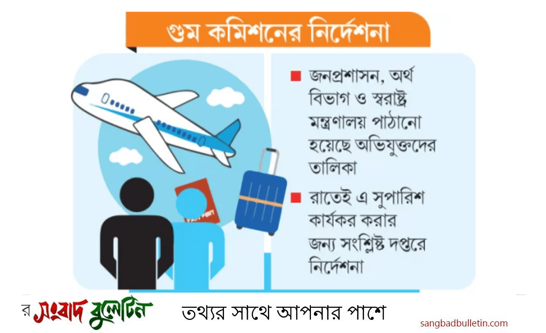 গুম কমিশন এসব কর্মকর্তার নাম, অপরাধের ধরন এবং বিদেশযাত্রায় নিষেধাজ্ঞা আরোপের বিষয়টি মন্ত্রিপরিষদ বিভাগ, স্বরাষ্ট্র মন্ত্রণালয়, অর্থ বিভাগ এবং সংশ্লিষ্ট সংস্থাগুলোকে অবহিত করেছে। রাতেই এ সুপারিশ কার্যকরের জন্য সংশ্লিষ্ট দপ্তরে নির্দেশনা দেওয়া হয়েছে। বহিরাগমন নিয়ন্ত্রণ শাখায় এ নির্দেশনা পাঠানো হয়েছে বলে নিশ্চিত করেছে সংশ্লিষ্ট মন্ত্রণালয়।