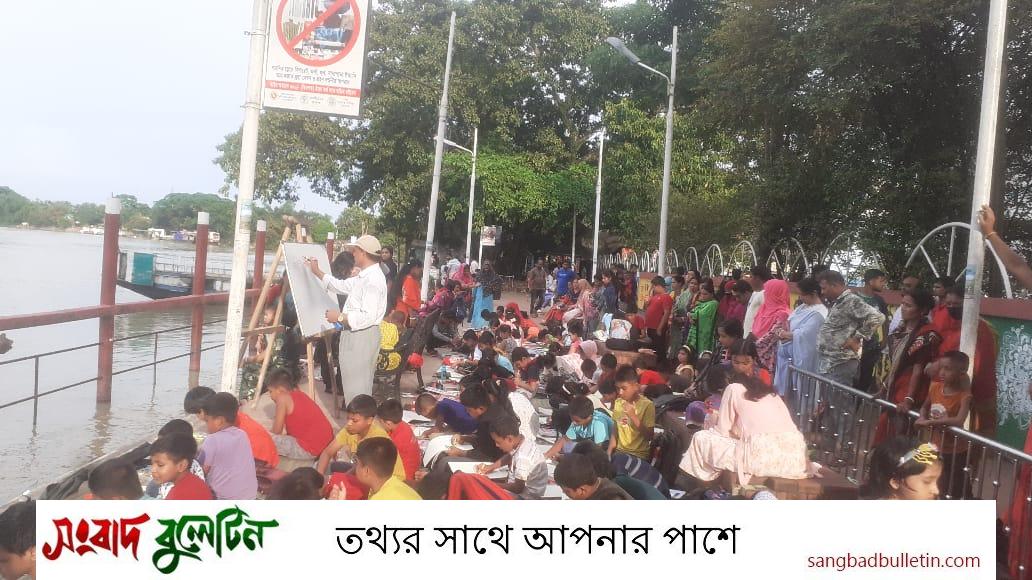শনিবার বিকেল ৪ টায় রিভারভিউয়ে শিশুদের নিয়ে অনুষ্ঠিত হয় এই চিত্রাংকন। এর আগে থেকেই শিশুদের নিয়ে আসতে থাকেন অভিভাবকরা। একজন দুইজন করে কিছুক্ষণের মধ্যেই শিশু ও অভিভাবক সমাবেশে পরিণত হয় অনুষ্ঠানস্থল। শিশু ও অভিভাবকের উৎসবমুখর উপস্থিতিতে তিল ধারনের ঠাঁই ছিল না রিভারভিউয়ে। শিশুদের আঁকা ছবিতে দেখা মিলে বন্যার্তদের হাহাকার। কেউ জল রং দিয়ে এঁকেছে খর¯্রােতা নদী আবার কেউ পেন্সিল রং দিয়ে আঁকছে ডুবে যাওয়া ঘর-বাড়ি। কারো তুলিতে ফুটে উঠেছে নিদারুণ ডুবন্ত জীবনের গল্প। সন্ধ্যা ৭টা পর্যন্ত চলে ছবি আঁকা। ছবি আঁকার ফাঁকে বন্যার্তদের জন্য অনুদানের বাক্সে টাকা দেন অভিভাবকসহ উপস্থিত সাধারণ মানুষ।