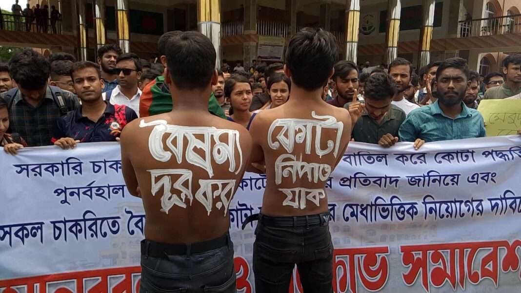 তারা আরও বলেন, ২০১৮ সালের রক্তের দাগ আজও শুকায় নাই। টিয়ারশেলের দাগ আজও শুকায় নাই। আমাদের সেই সংগ্রাম ব্যর্থ হওয়ার পথে। আমাদের উপর হাইকোর্ট যে রায় চাপিয়ে দিয়েছে আমরা সেই রায় মানি না। যারা কোটাধারী মেধাবী পরিচয় দিতে চান, তাদেরকে বলতে চাই, এই পরিচয় খুবই লজ্জার।