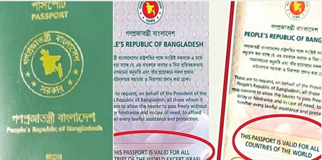 আগে বাংলাদেশের পাসপোর্টে লেখা থাকত, ‘এই পাসপোর্ট বিশ্বের সব দেশের জন্য বৈধ, ইসরায়েল ব্যতীত’।