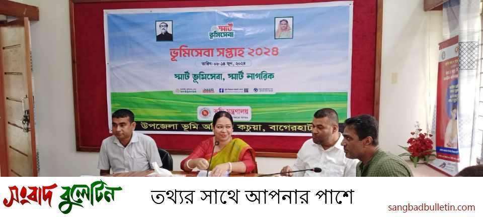 স্মার্ট ভূমি সেবায় ভূমি মন্ত্রণালয়’ প্রতিপাদ্যকে সামনে রেখে বাগেরহাটের কচুয়ায় ভূমি সেবা সপ্তাহ-২০২৪ কার্যক্রমের উদ্বোধন করা হয়েছে।