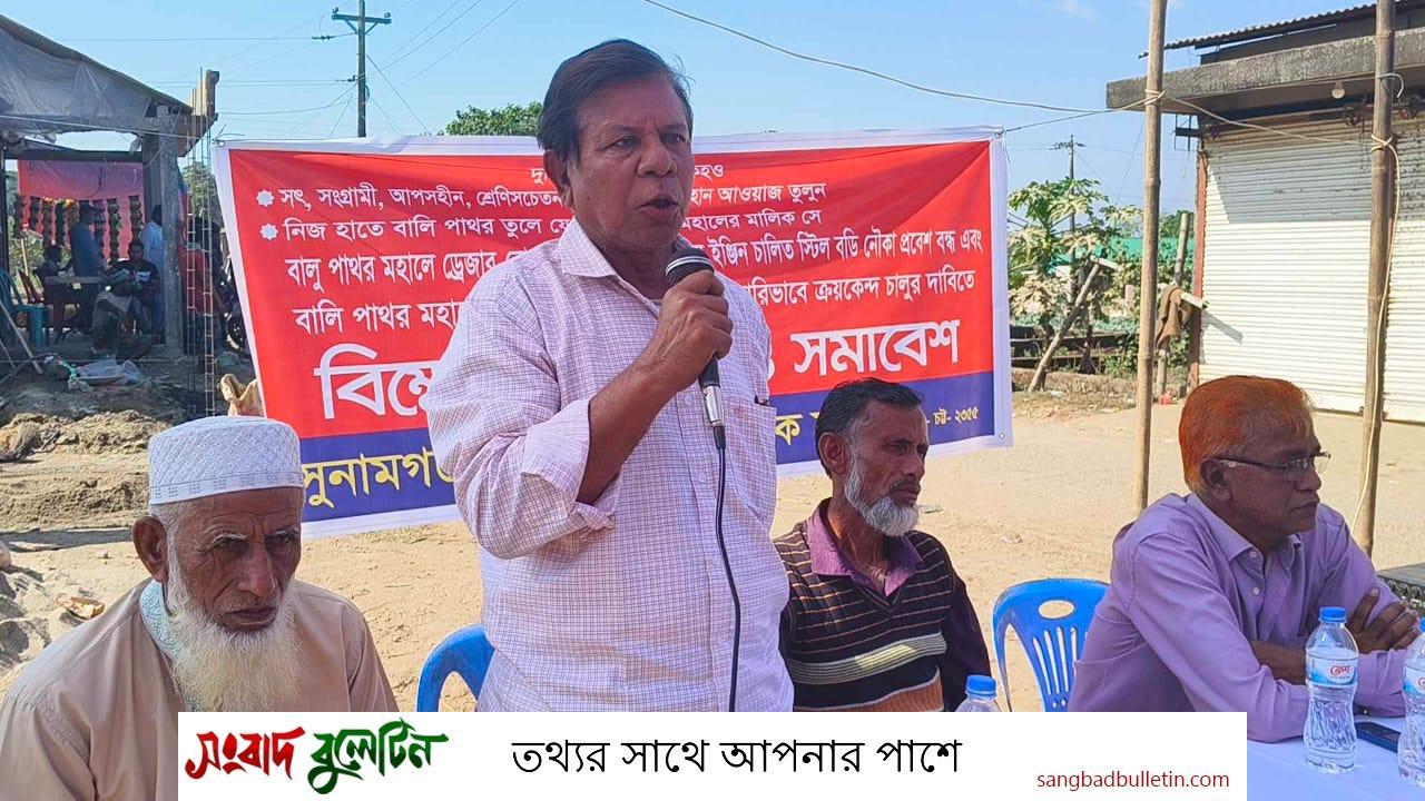 বালি- পাথর মহালে ইজারা পদ্ধতি বাতিলের দাবিতে সুনামগঞ্জ জেলা বারকি শ্রমিক সংঘের বিক্ষোভ মিছিল ও সমাবেশ